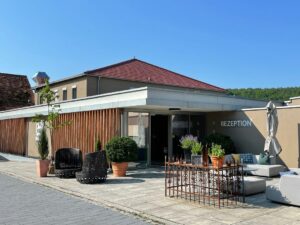Neben modern eingerichteten Zimmern in unterschiedlichen Größen bis hin zum 70 m² großen „Sky-Suiten“ besticht das noble Hotel durch die  Hopfentherme  und den wunderschönen Poolbereich. Sauna, Dampfbad, Laconium und Massagen runden den Wellnessbereich ab.