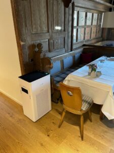FINESTAIR Luftreiniger für einen virenfreie Luft. Die Geräte sind im Empfangsbereich, im Frühstücksraum und in den beiden Restaurants im Einsatz.